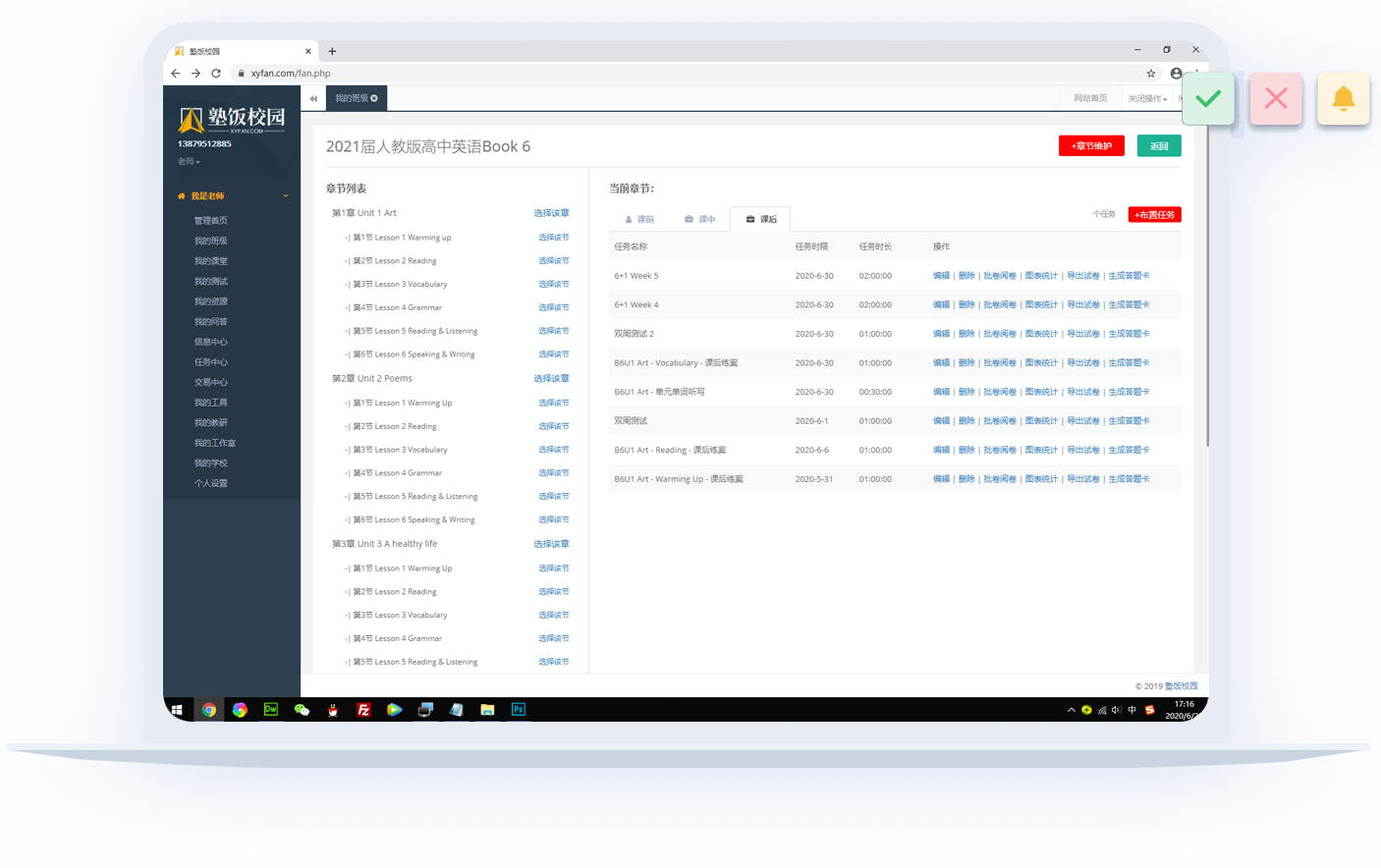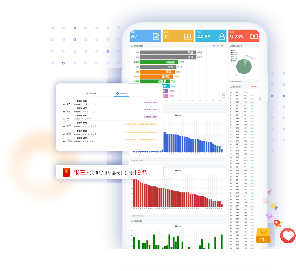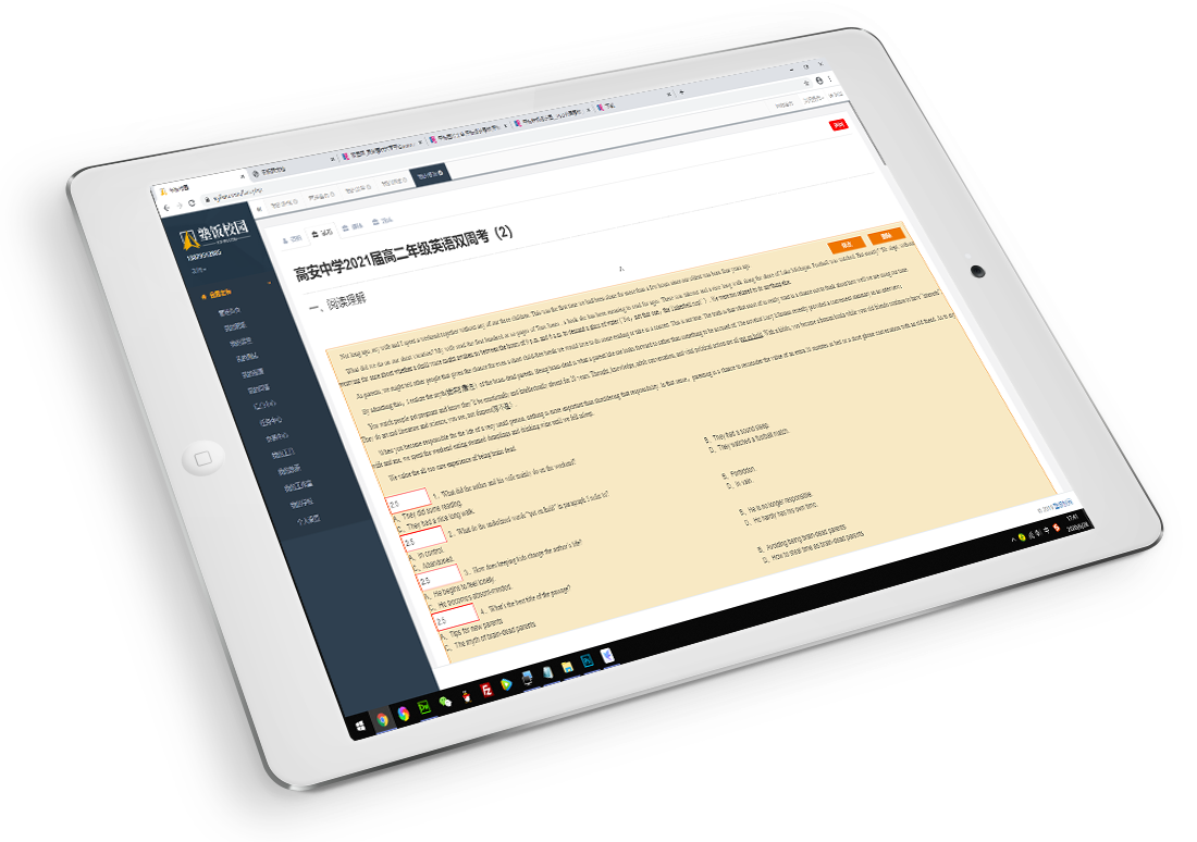 支持各学科各种不同题型试卷的自由组合和一键生成,学生可在线答题,也可以线下答题卡答题,支持一键评分。